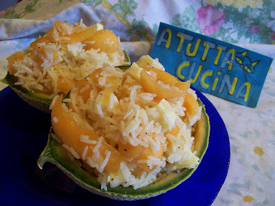 E' proprio sfiziosa...Melone con prosciutto crudo e mozzarella lo preparo ma con il riso non ci avevo mai pensato...